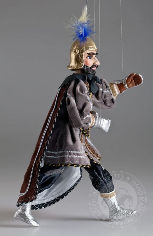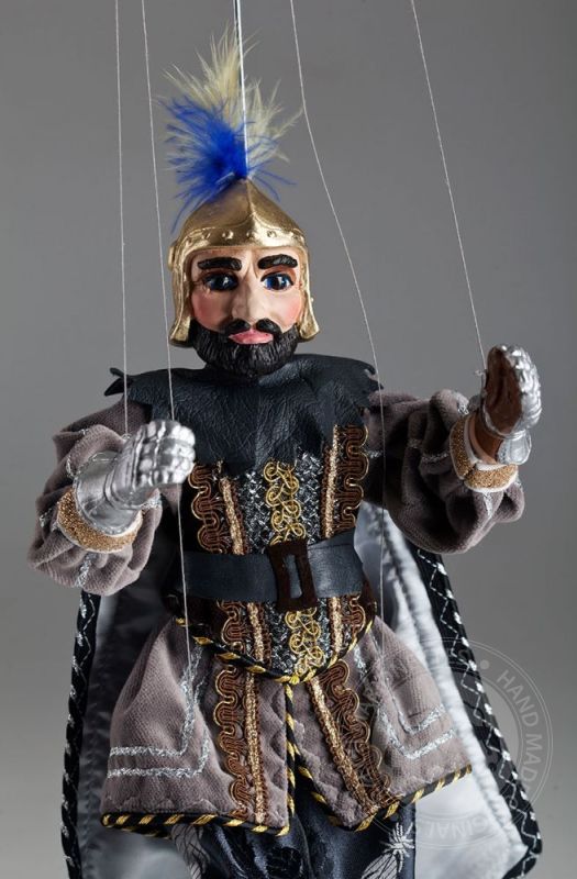 El Caballero Solitario recorrió profundos bosques y tierras lejanas. Afortunadamente, se unió a nuestra colección de marionetas, pero si te conviertes en su amigo, te estará eternamente agradecido. Marionetas como este caballero se producen en ediciones limitadas en pocas piezas. La cabeza, los brazos y las piernas están moldeados y pintados a mano, mientras que el cuerpo (esqueleto) está hecho de madera de tilo. La marioneta tiene un control tradicional, conectado al controlador con un cable sólido, y los hilos clásicos se usan para mover manos y pies.