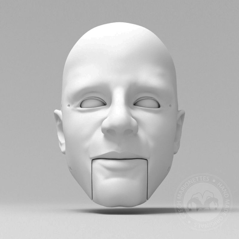 Hombre de frente alta. Boca, ojos y párpados móviles. Puedes imprimir el modelo en cualquier impresora 3D.