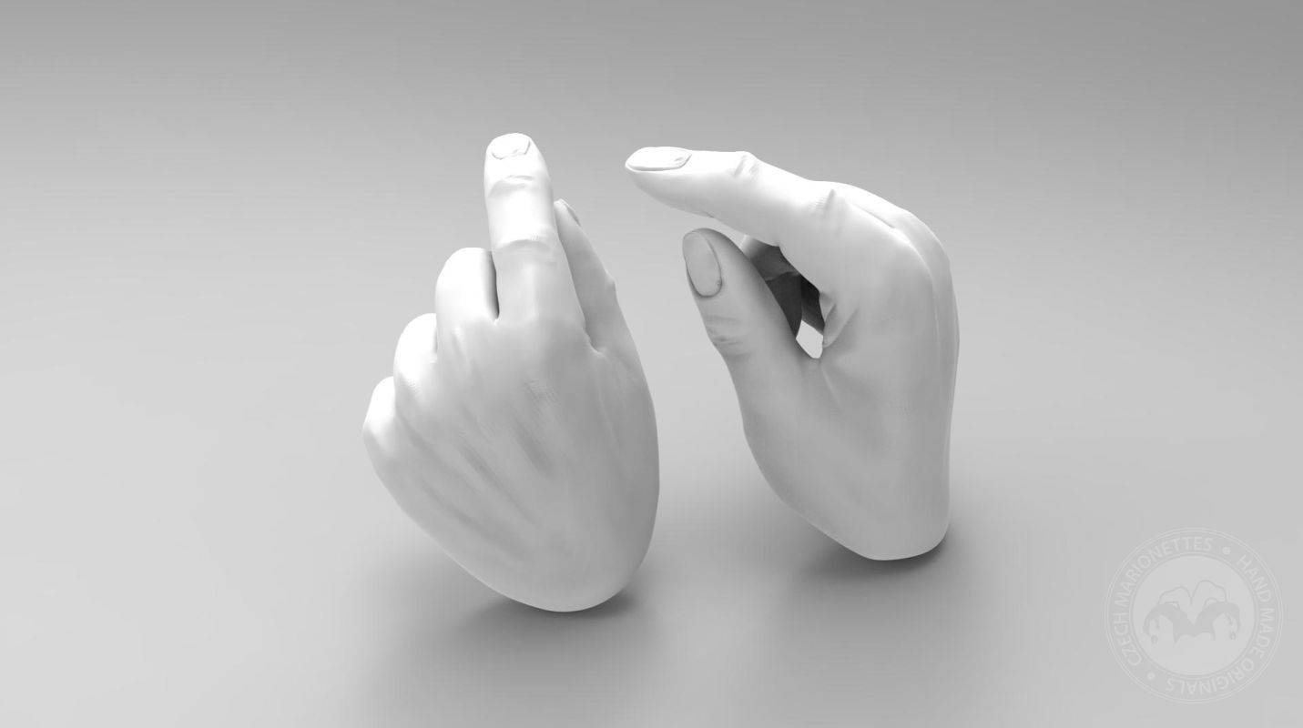 Compra y descarga el modelo de las manos izquierda y derecha de una marioneta en un gesto específico para imprimir tu nueva marioneta. Puedes imprimir fácilmente el modelo en cualquier impresora 3D.