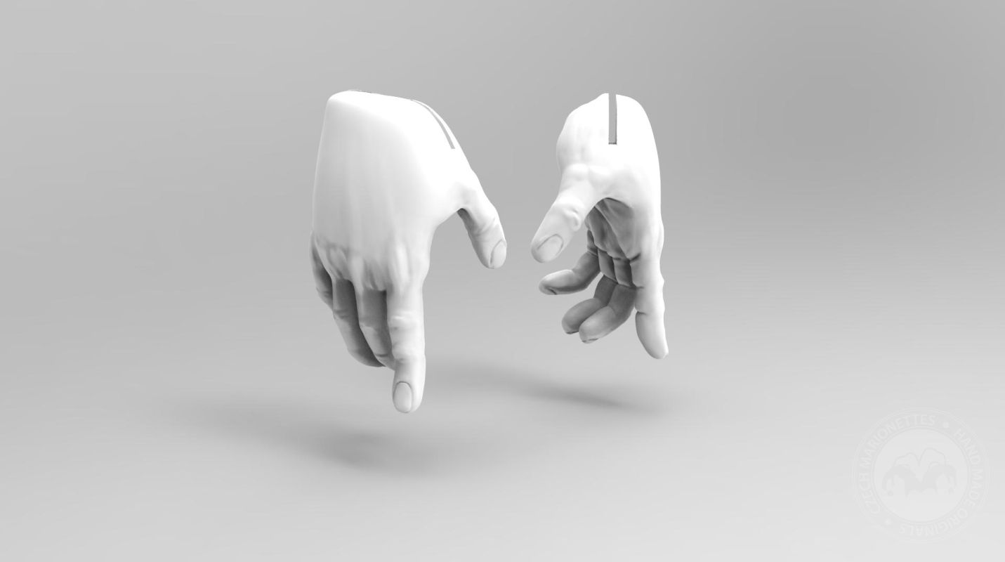 Compra y descarga el modelo de la mano izquierda y derecha de la marioneta en un gesto de señalar para imprimir tu nueva marioneta. Puedes imprimir fácilmente el modelo en cualquier impresora 3D.