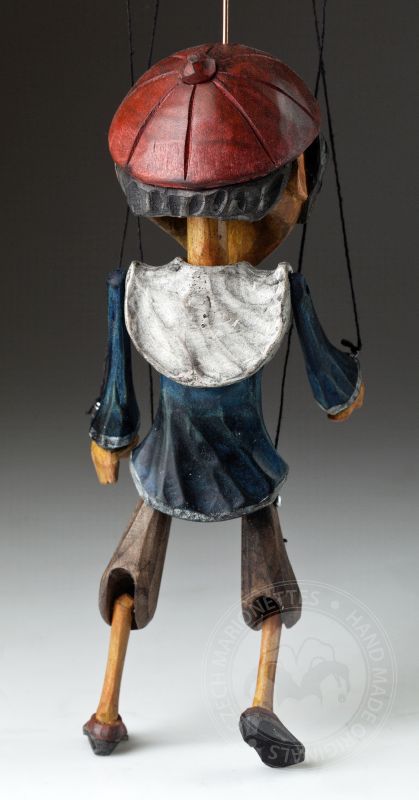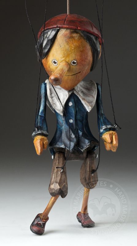 Cette marionnette en bois est taillée à la main dans de superbes dêtails, peinte 'la main with plusieurs Couches de peinture et recouverte d'une vraie cire d'abeille.Les tons terreux des couleurs, l'expression The la cara y la estructura de la madera son visibles y las puntas siguen siendo el títere viviente de Pinocho. C’est la combinaison des méthodes tradicionalnelles et modernes qui fait de lui la Superestrella parmi les otras marionetas.