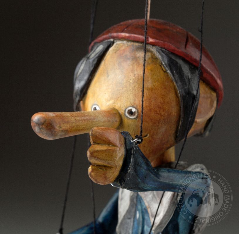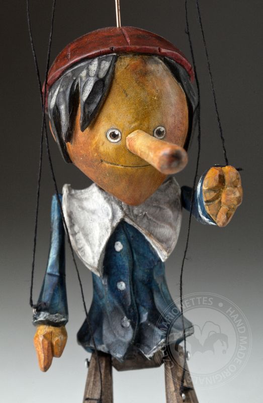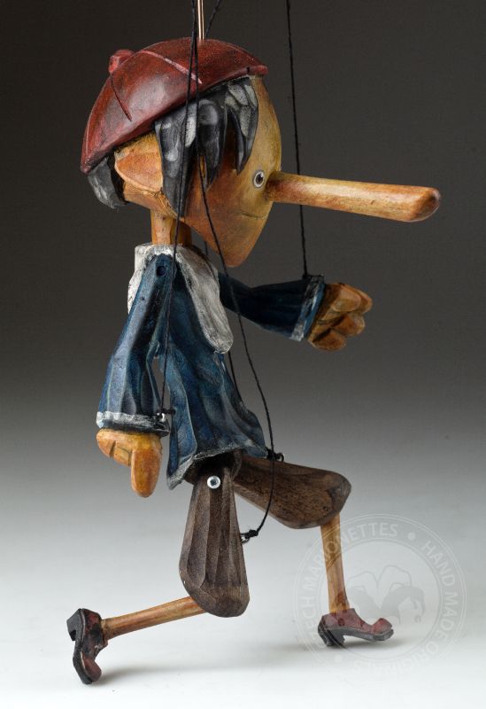 Superestrella Pinocho: marioneta de hilo tallada a mano con un aspecto original
