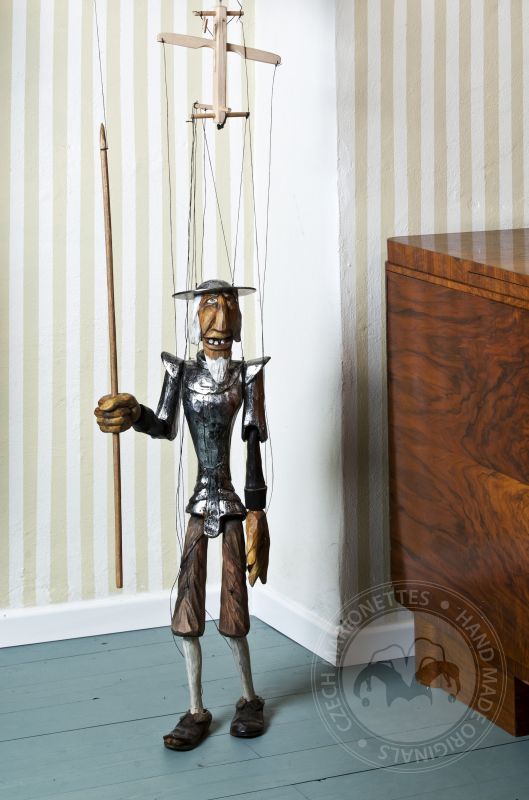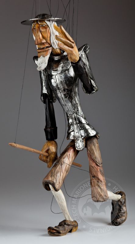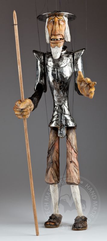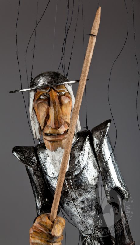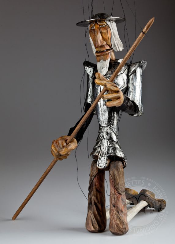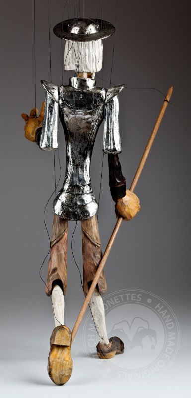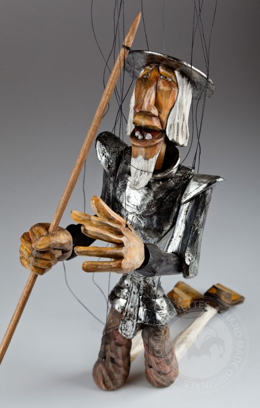 Don Quijote de la Mancha es un famoso personaje de las novelas de Miguel de Cervantes de principios del siglo XVI. Desencantado de la vida decidió hacerse un caballero andante viajando para salvar al mundo de sí mismo junto a su fiel servidor Sancho Panza. Posiblemente uno de los guerreros románticos más influyentes jamás creados. Esta marioneta bellamente tallada y pintada a mano de la colección Might is Right de Martin refleja perfectamente la desilusión de este famoso personaje con el mundo.