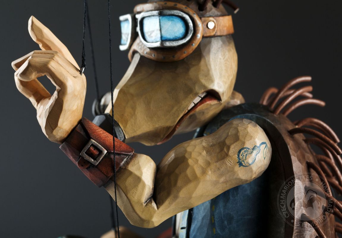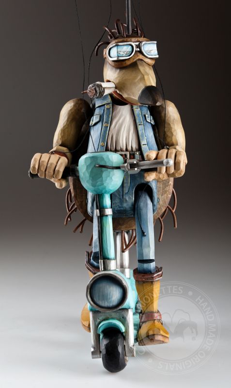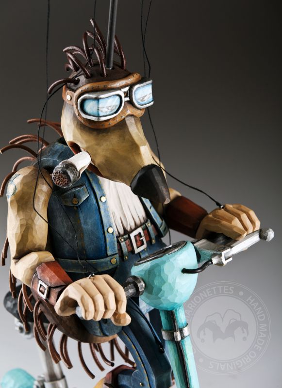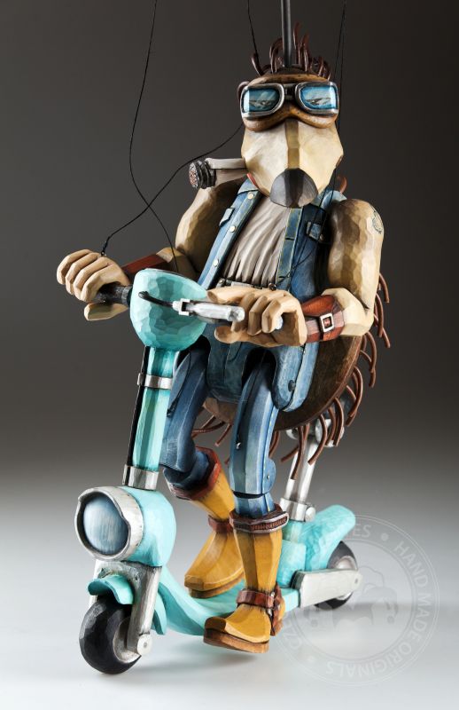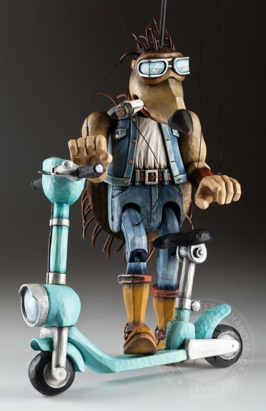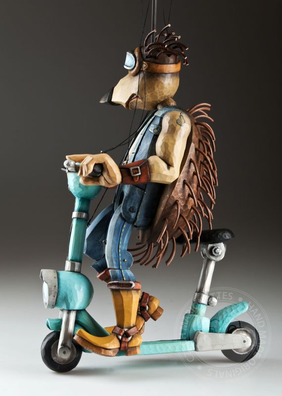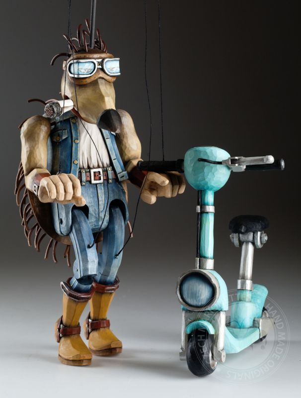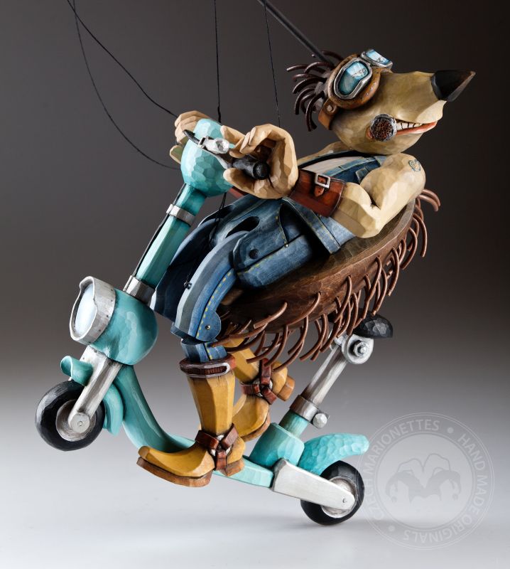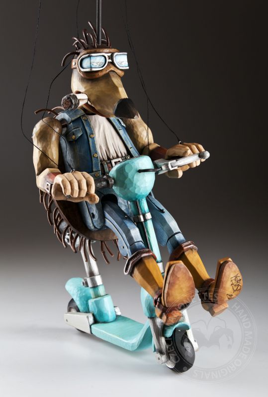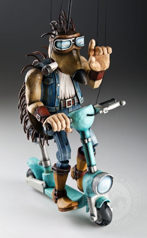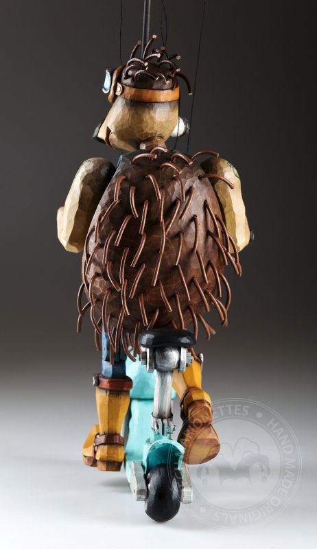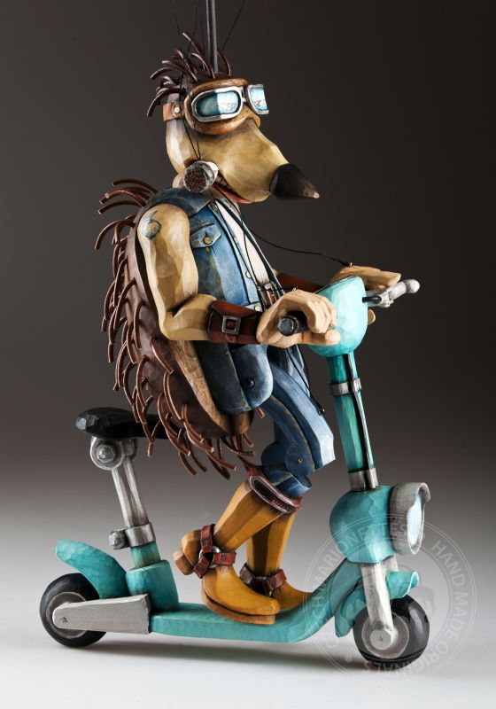Otra de la colección de marionetas únicas con un diseño inspirado es este increíble erizo. Sus espinas se agitan al viento mientras monta su scooter rumbo a nuevas y grandes aventuras.