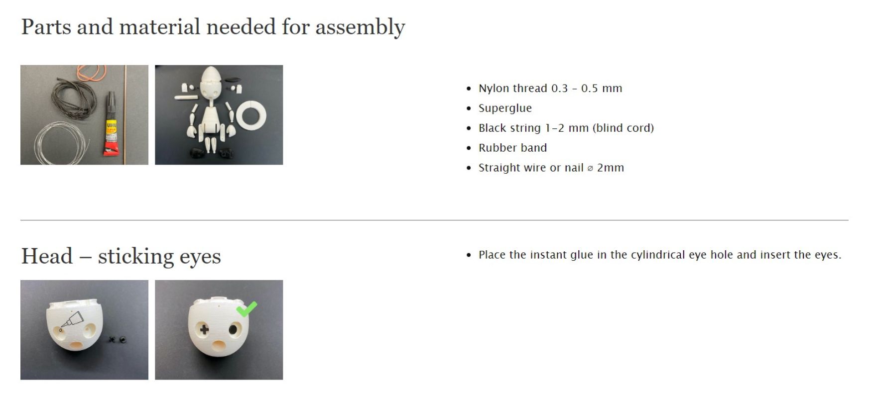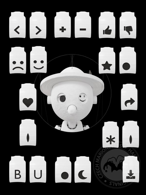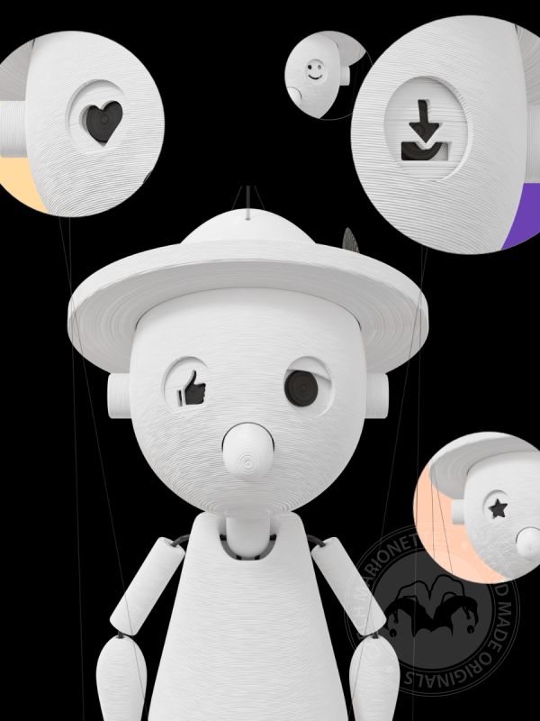 Téléchargez et imprimez votre Pinocchio 3D et devenez marionnettiste | Vous recevrez des fichiers pour l'impression 3D (.stl), des suggestions de paramètres d'impression, ainsi qu'un manuel d'instructions d'assemblage | Nous avons passé un agréable moment à développer Pinocchio 3D et nous apprécierions vos retours d'expérience sur ce qui devrait être développé ensuite. Dans le cadre de Pinocchio 3D, vous recevrez tous les accessoires (paupières expressives, gestes de la main, personnages supplémentaires) gratuitement.