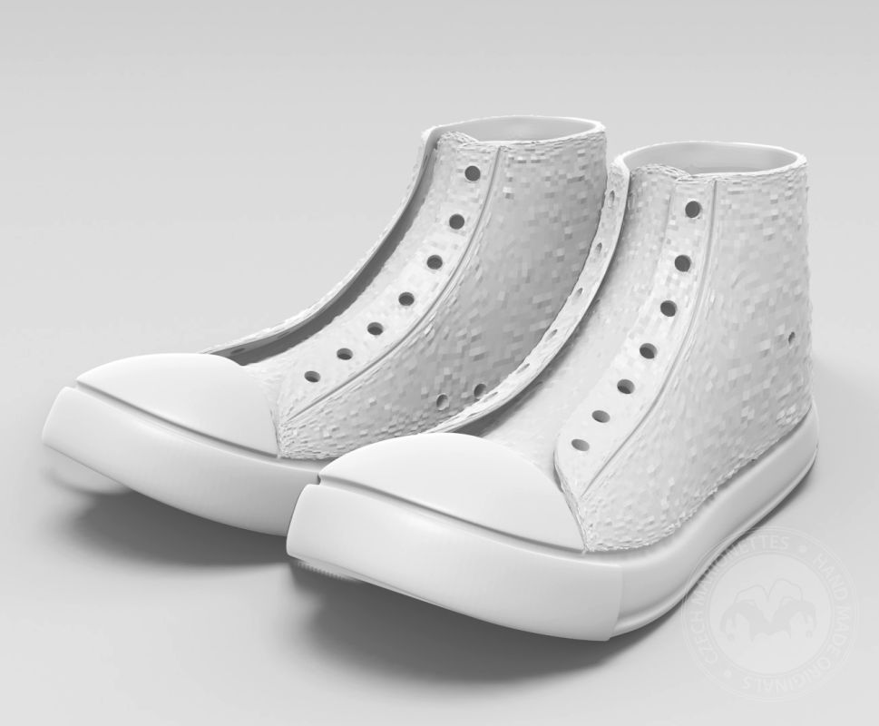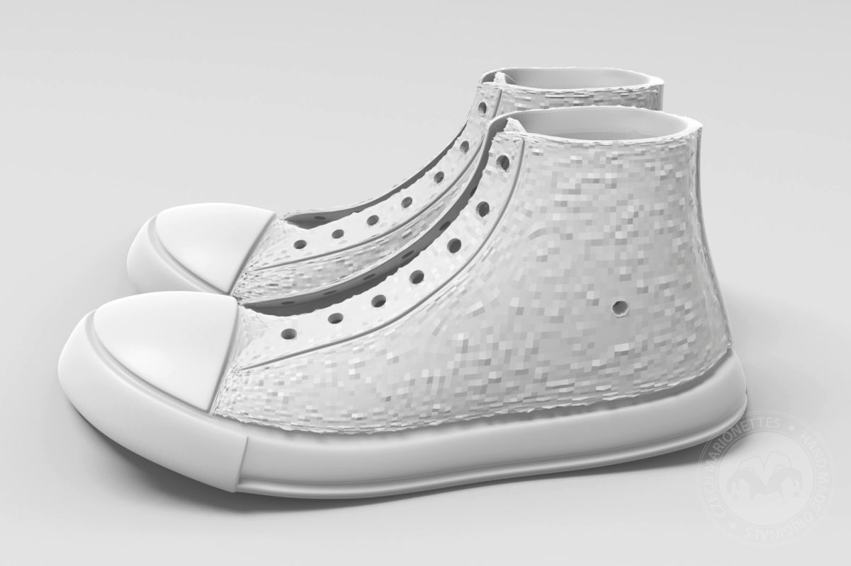 Achetez et téléchargez le modèle de chaussures Converse hautes pour imprimer votre nouvelle marionnette. Vous pouvez imprimer le modèle de manière ludique sur n'importe quelle imprimante 3D.