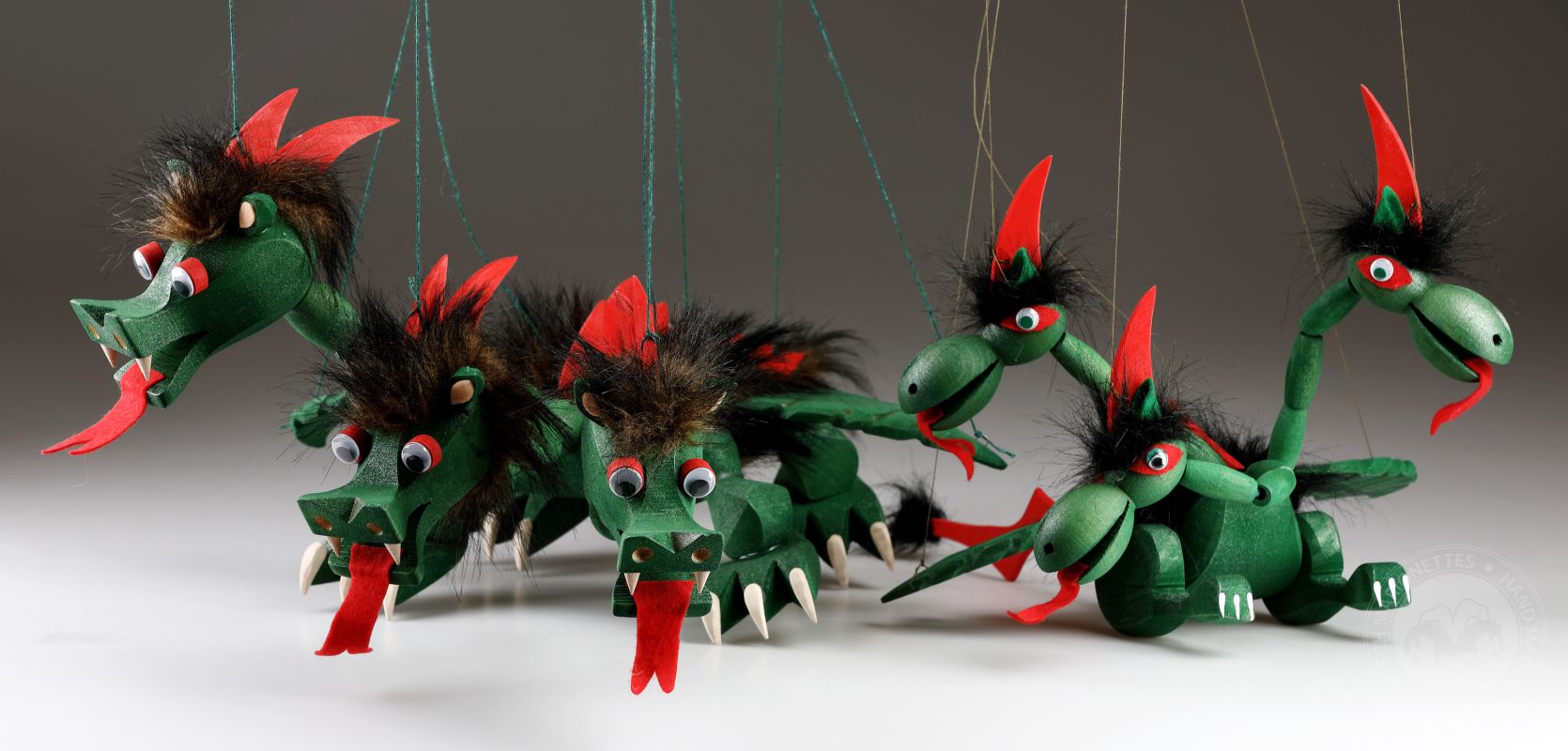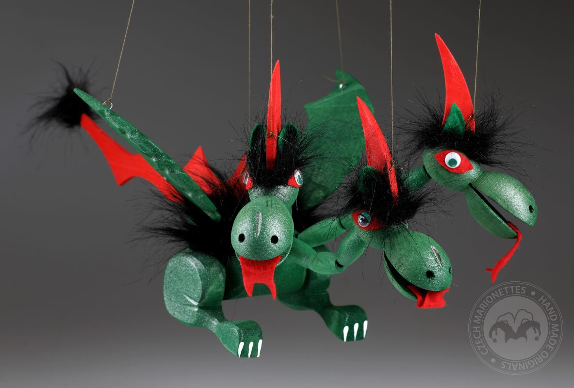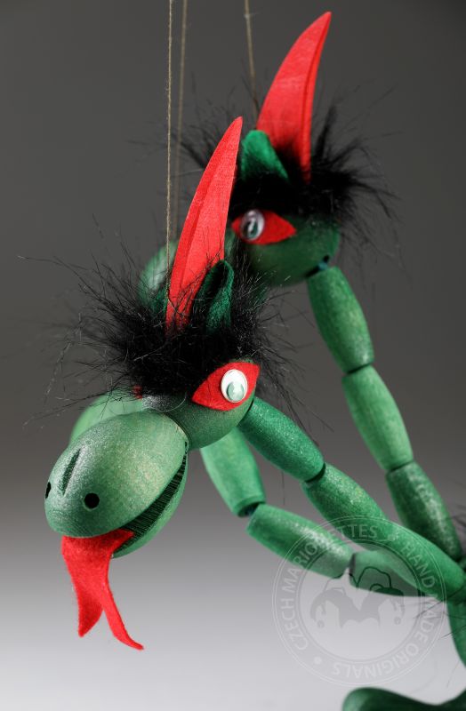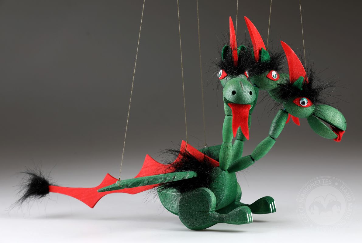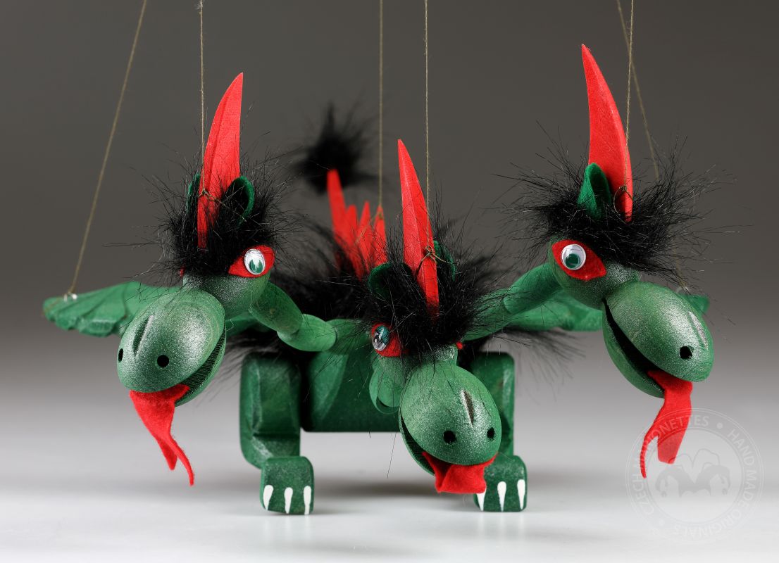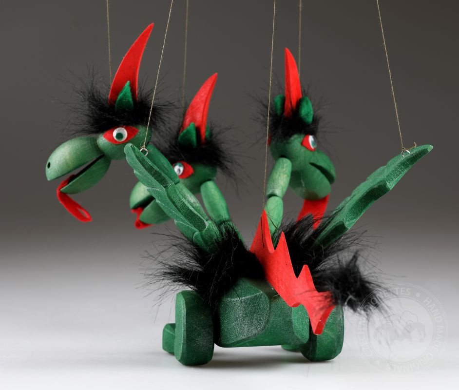 La marionnette en bois Draka sera effectuée dans chaque théâtre de marionnettes ou chaque chambre pour enfants. Il est mignon, léger et facile à contrôler. Vous pouvez déplacer chaque tête séparément, bascule - pilote de marionnettes - est simple, le dragon est léger, alors les enfants peuvent également jouer avec elle.