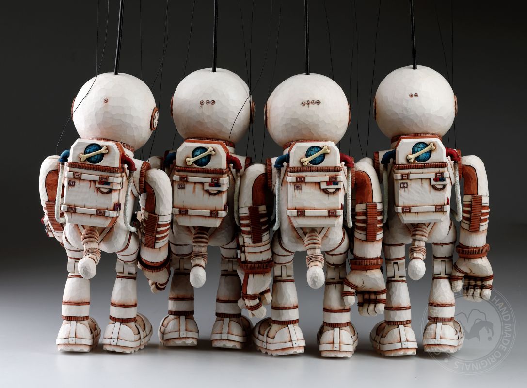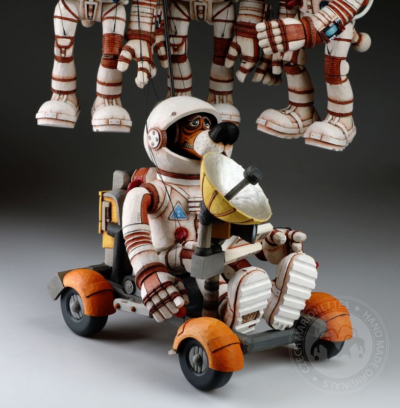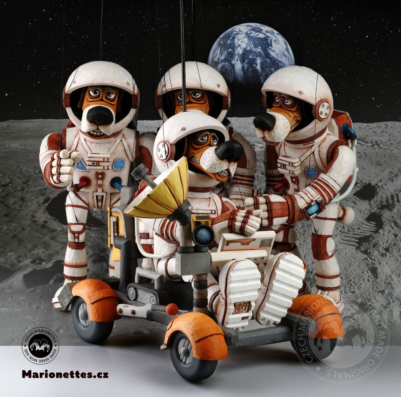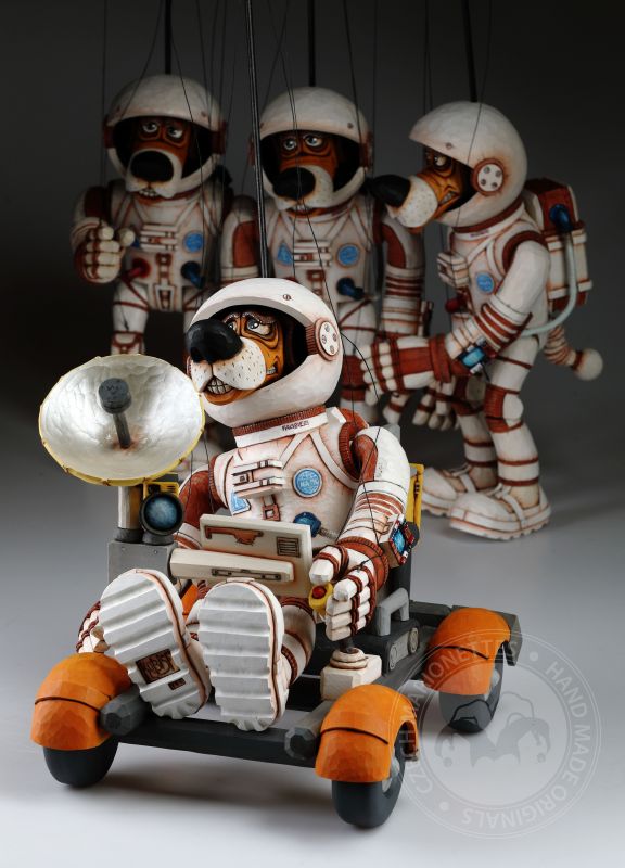 Faites partie de cette mission spatiale sous la direction de quatre marionnettes Dogstronaut en bois sculptées à la main. Ils sont arrivés de l'atelier de Jakub Fiala et leur prochain arrêt n'est nulle part mais sur la lune.
