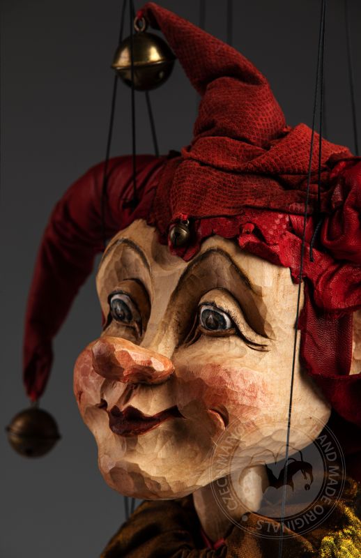La marionnette unique ,,Lester The Jester" est une création fantastique, il mesure 55 cm de haut, il a été sculpté avec amour par Lenka Pavlíčková à partir du bois de tilleul le plus fin et conservé dans de la cire d'abeille. Elle adore peindre ses marionnettes avec de la peinture à l'huile car cela permet au grain naturel du bois de briller magnifiquement.