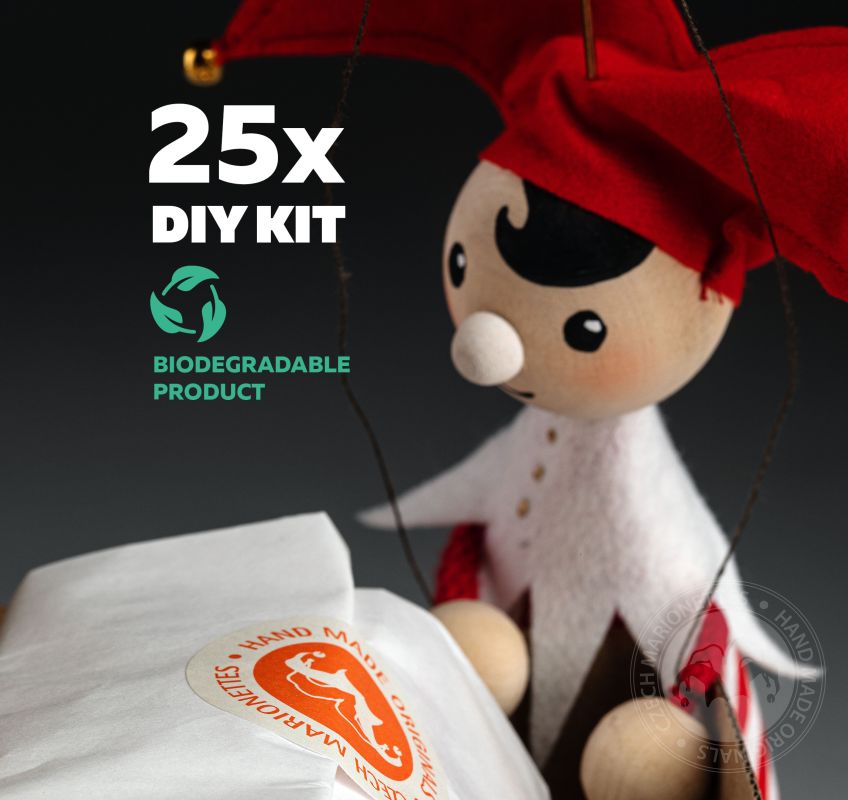 Paquet spécial de 25 pièces de kits de bricolage de marionnettes Little Jester. Offre incroyable pour les écoles, les cours d'art ou les ateliers. Assemblez et décorez votre propre marionnette tchèque en bois.