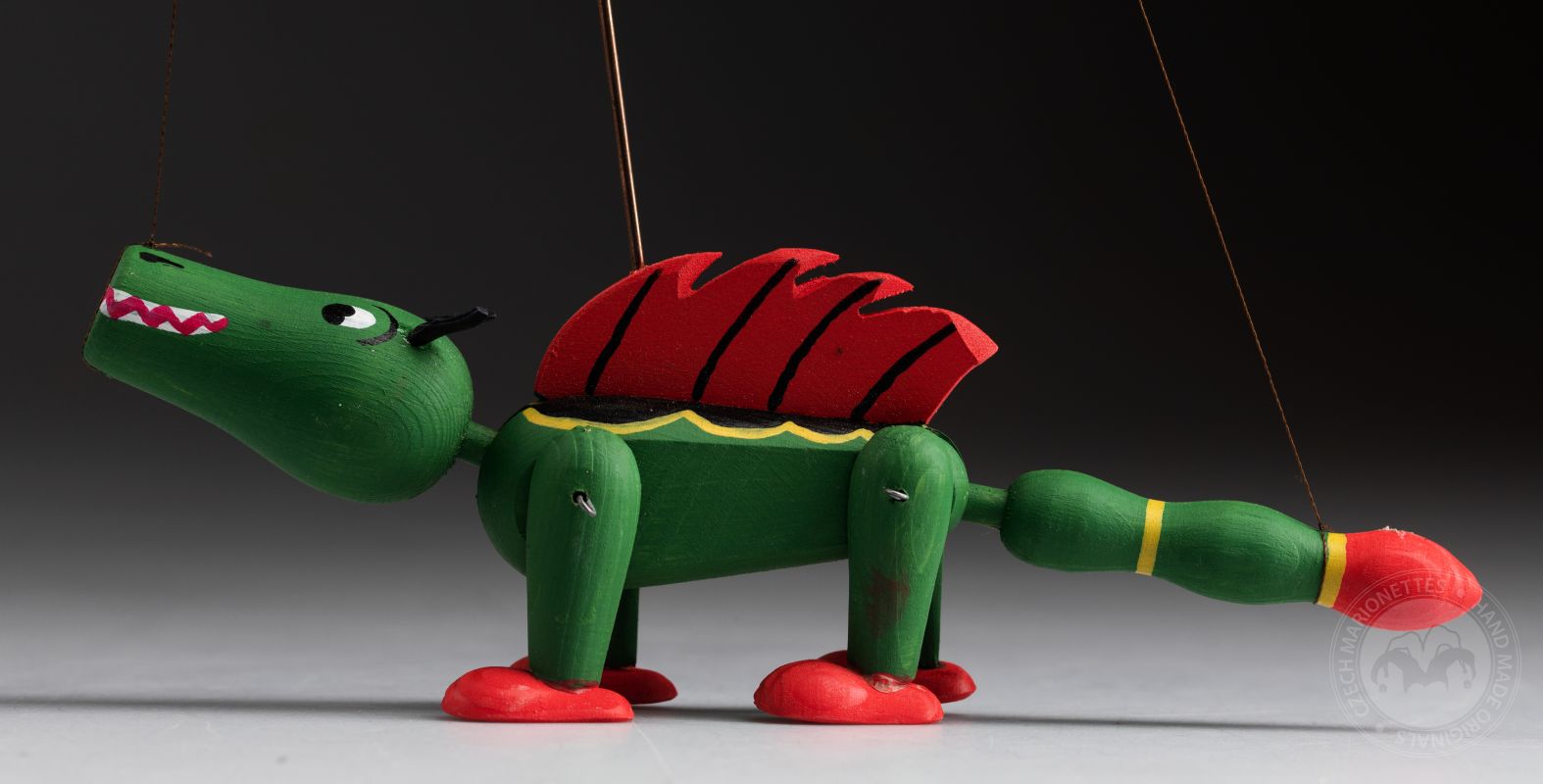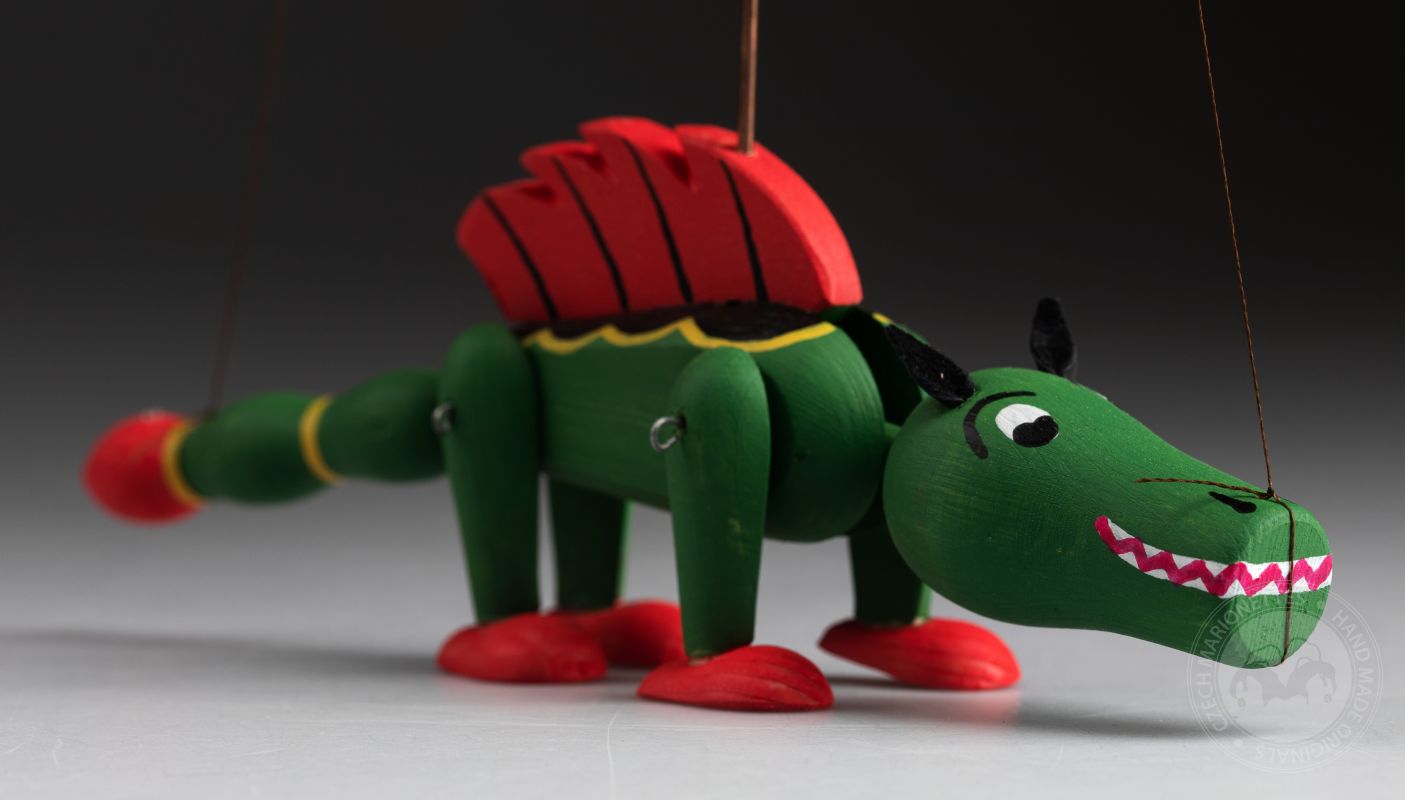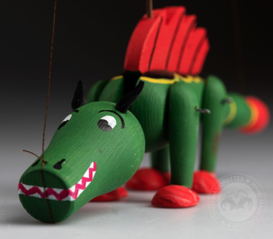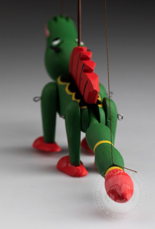 Le dragon est un personnage classique que vous pouvez voir dans les contes de fées et les légendes tchèques. Cette marionnette est tout en bois et elle est peinte à la main avec des couleurs vertes et rouges vibrantes.