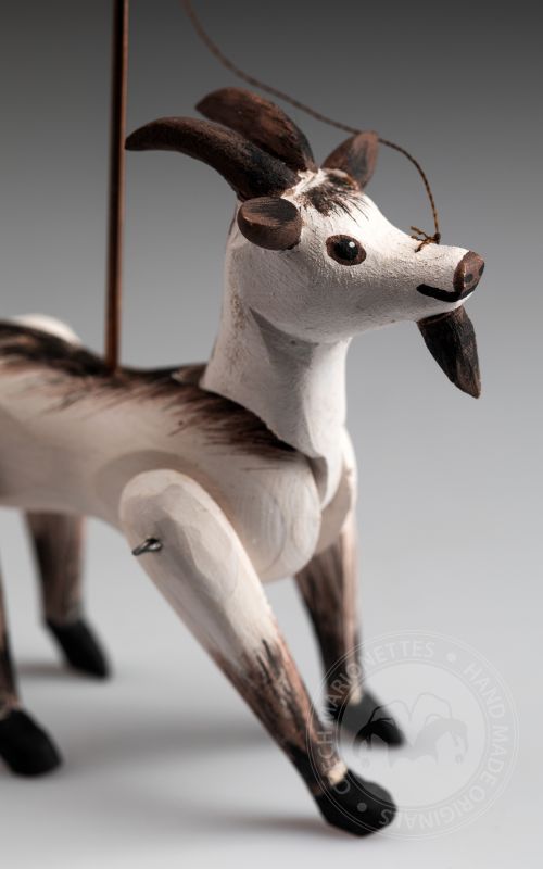 Cette mignonne petite chèvre est une marionnette parfaite si vous êtes collectionneur ou si vous voulez jouer. Il est fait à la main et peint à la main.
