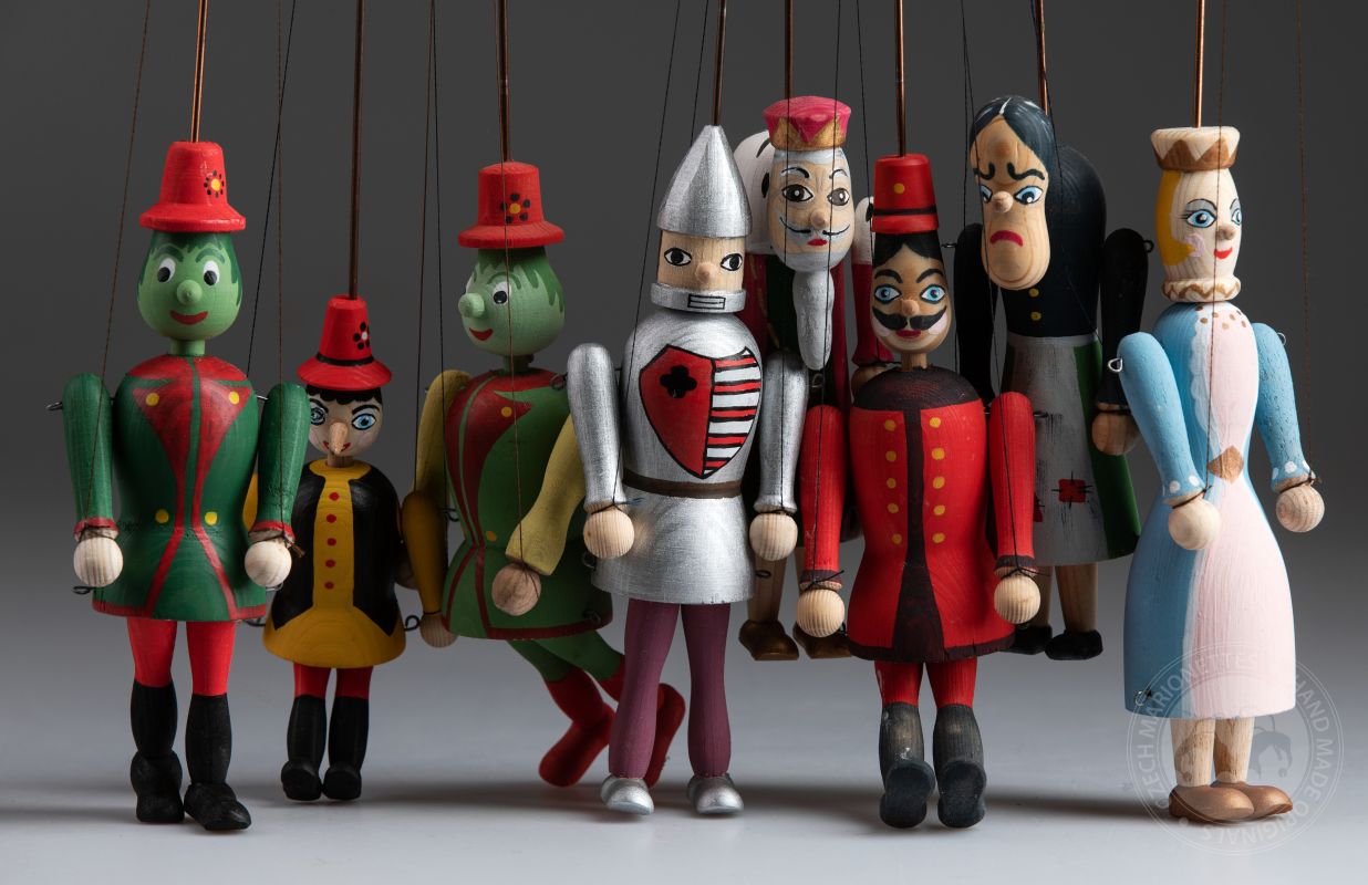 Les marionnettes de cette catégorie représentent la tradition tchèque en matière de fabrication de marionnettes. Il s'agit principalement de marionnettes coulées en petite série, qui sont ensuite décorées à la main par couture et peinture.
