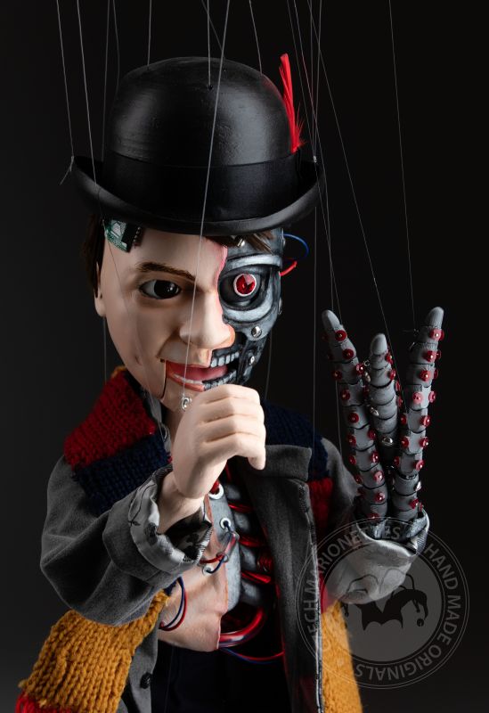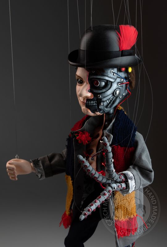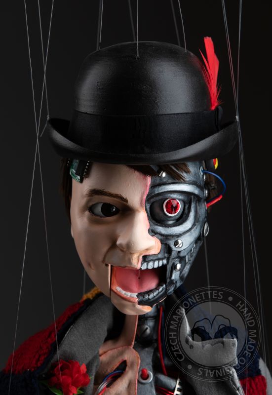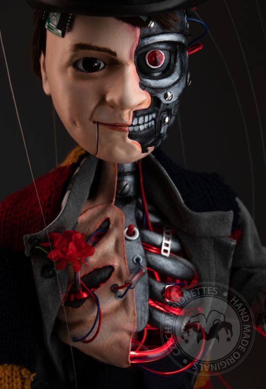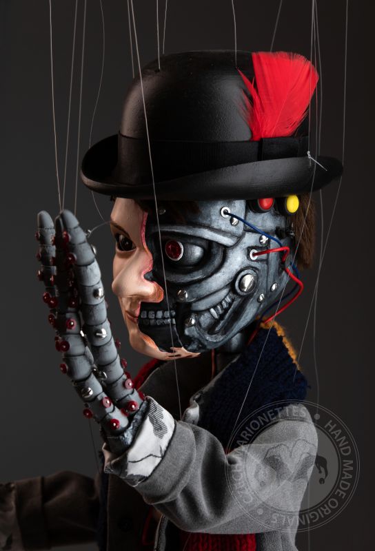 Cette marionnette a été construite à la demande d'un client. L'idée était d'avoir une marionnette qui ressemblerait à un humain comme elle ressemblerait à un robot. Regardez de plus près tous les détails! C'est une œuvre d'art époustouflante.