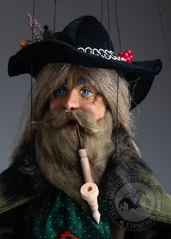 Cette marionnette est une belle version du personnage tchèque classique Krakonoš. krakonoš est un vieil homme aux pouvoirs magiques qui vit dans les montagnes tchèques de Krkonoše.
