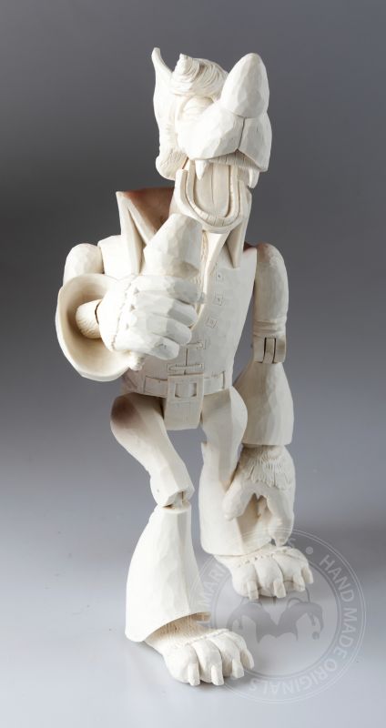 La marionnette Wolf Elvis est fabriquée à partir d'un moulage en résine et peinte à la main. L'ensemble de la marionnette est très détaillé. La combinaison de son look effronté et de sa tenue glamour fait de ce mec une créature super cool et géniale.