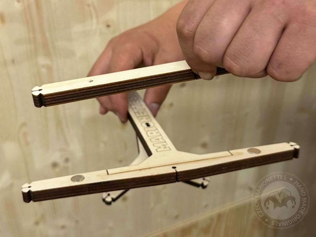 Ce contrôleur horizontal est conçu pour une manipulation fluide et précise des marionnettes dansantes. En plus du contrôleur principal, il comporte un petit levier additionnel spécifiquement destiné aux mouvements fins de la tête, permettant des mouvements encore plus réalistes et naturels. Grâce à une construction robuste et un design ergonomique, ce contrôleur offre aux marionnettistes un contrôle maximal sur les mouvements de la marionnette, des pas gracieux aux mouvements précis des bras et de la tête. Ce modèle est idéal pour les marionnettistes professionnels et amateurs qui souhaitent ajouter un niveau de mobilité et de réalisme supérieur à leurs marionnettes.