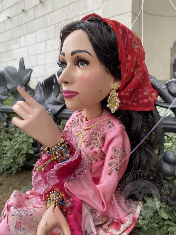Cette marionnette époustouflante a été fabriquée dans notre atelier sur demande personnalisée. Conçue en 3D, faite à la main avec le plus grand soin par des professionnels, vêtue d'une robe cousue main pleine de détails étonnants et portée à la perfection. Elle est un exemple incroyable de notre travail sur mesure.