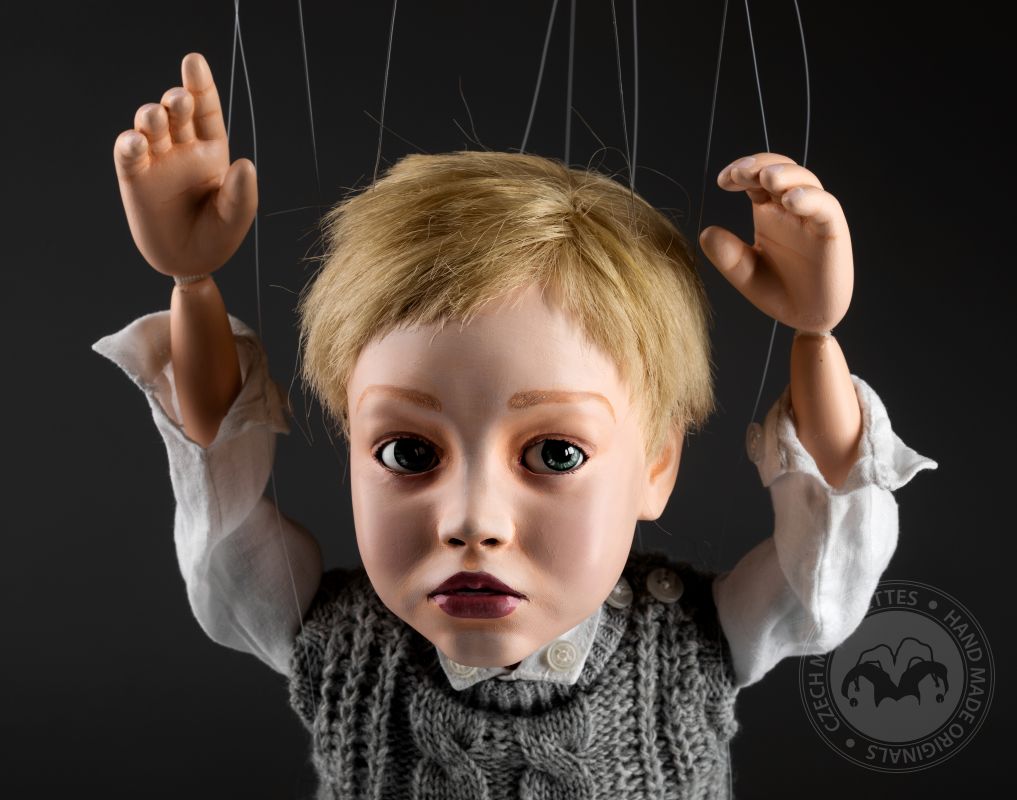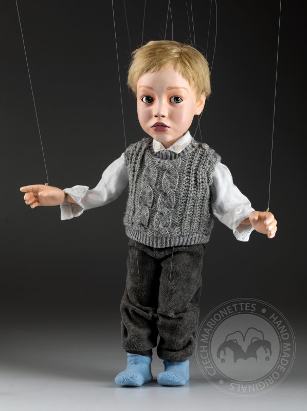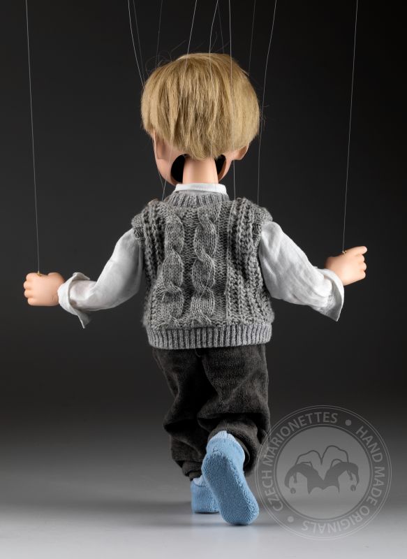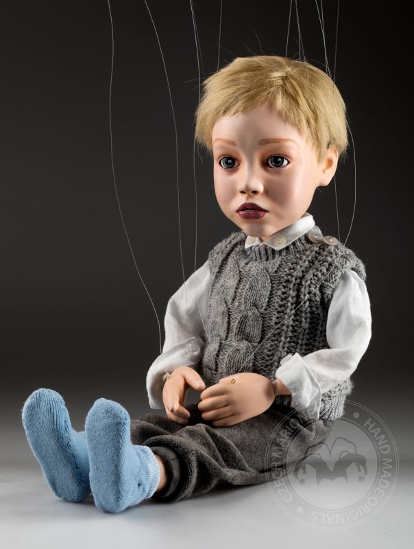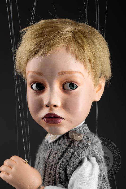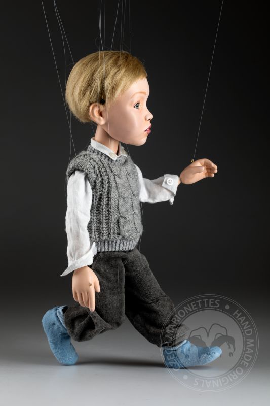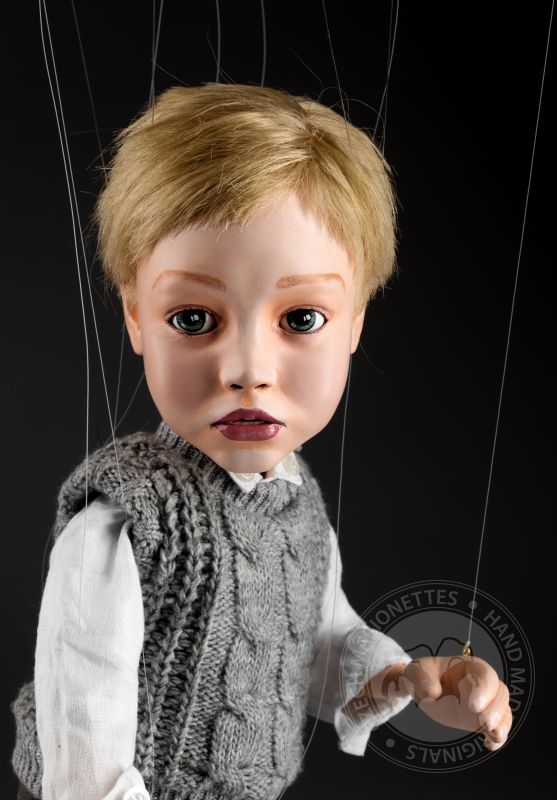 Cette jolie marionnette d'un garçon a été créée dans notre atelier sur demande personnalisée. Elle a été réalisée par notre artiste marionnettiste professionnel qui a mis beaucoup de soin et d'amour dans cette merveilleuse marionnette. Remarquez la belle peinture sur son visage et la tenue mignonne!