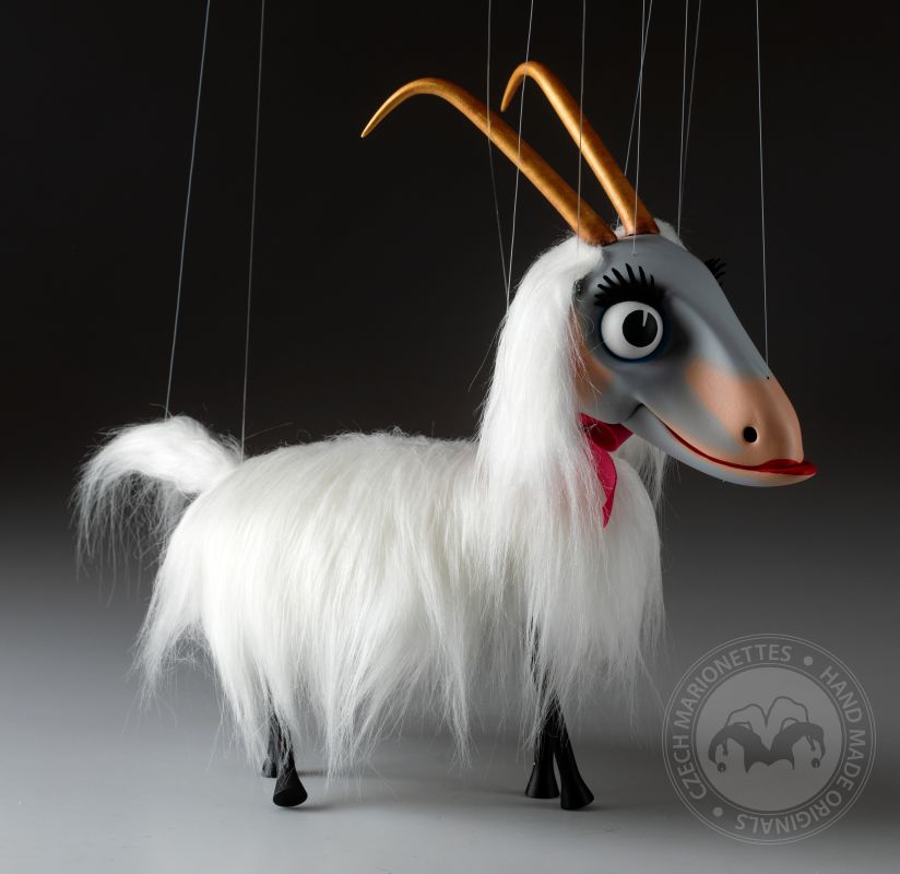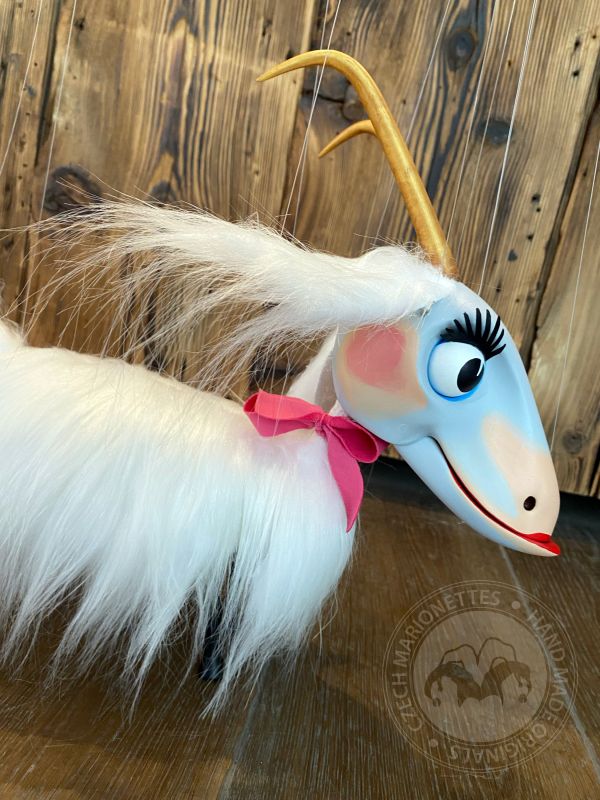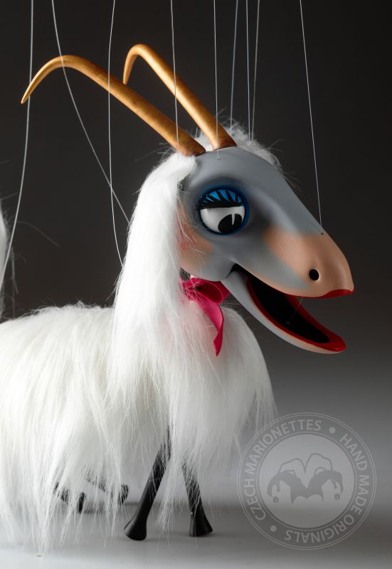 Cette marionnette sur mesure est une réplique artisanale charmante, inspirée du célèbre musical The Sound of Music. Conçue avec une grande attention aux détails, elle possède un corps blanc, doux et poilu, avec des yeux expressifs et une bouche mobile. Ses cornes dorées lui confèrent une touche d'élégance, tandis que son nœud rose vif lui apporte un charme espiègle. Grâce à ses fils ajustables, cette marionnette prend vie de manière magique, parfaite pour les collectionneurs et les amateurs de théâtre. Elle a une forte personnalité ! Notre chèvre peut être drôle, joyeuse, mignonne ou sérieuse.