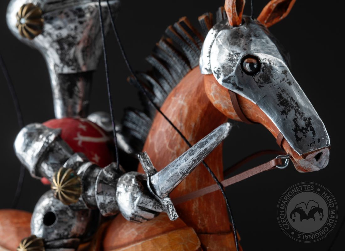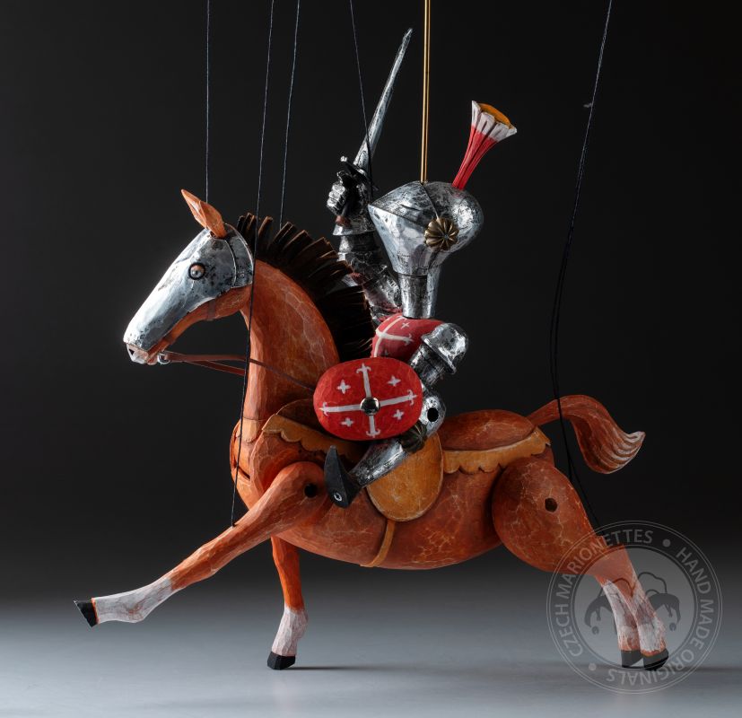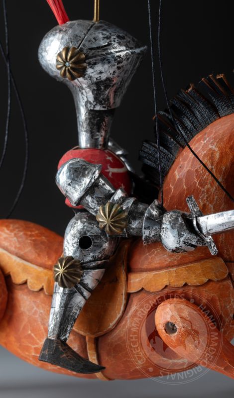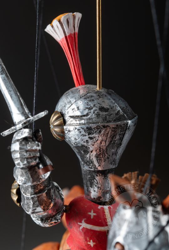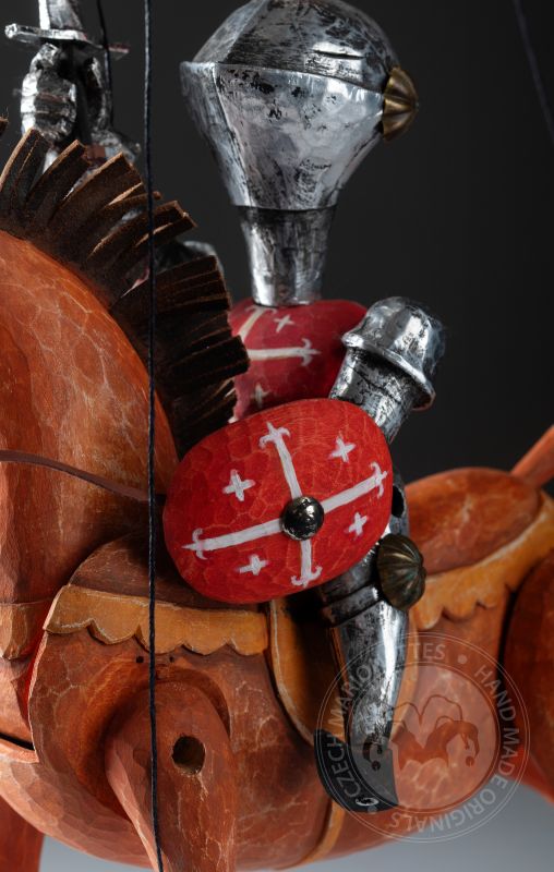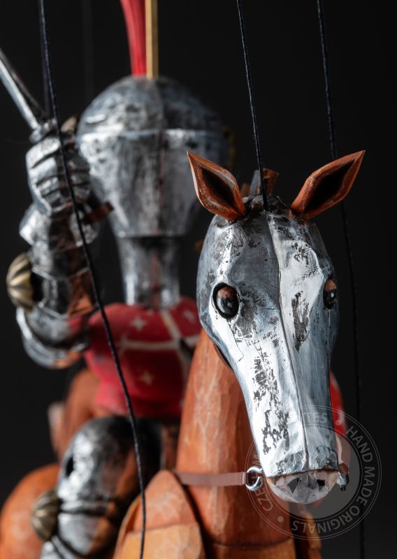Cette superbe marionnette sculptée à la main donne vie à la légende des chevaliers médiévaux. Vêtu d’une armure détaillée, armé d’une épée et d’un bouclier, le Knight Rider charge sur son noble destrier. Le travail artisanal met en valeur l’intensité du combat à travers des détails en bois finement sculptés, des accents métalliques et une posture dynamique. Entièrement articulée, cette marionnette est parfaite pour les collectionneurs, les spectacles de théâtre ou comme pièce décorative impressionnante.