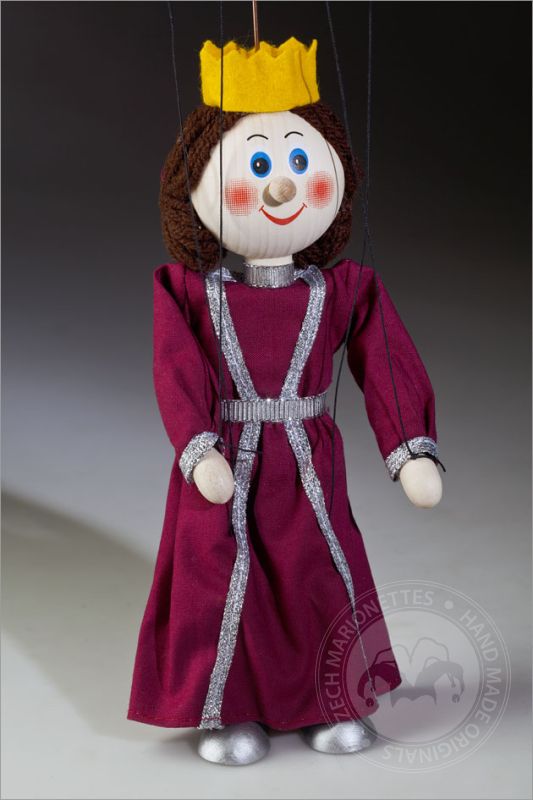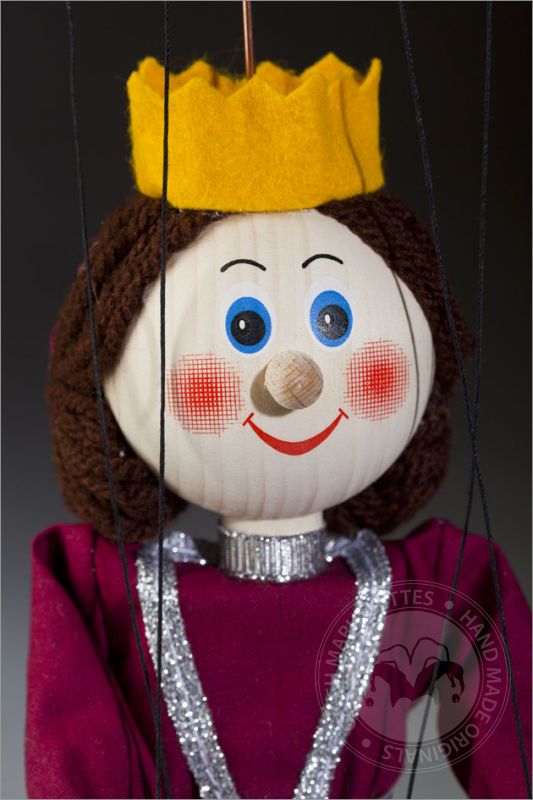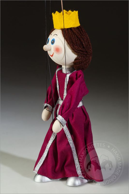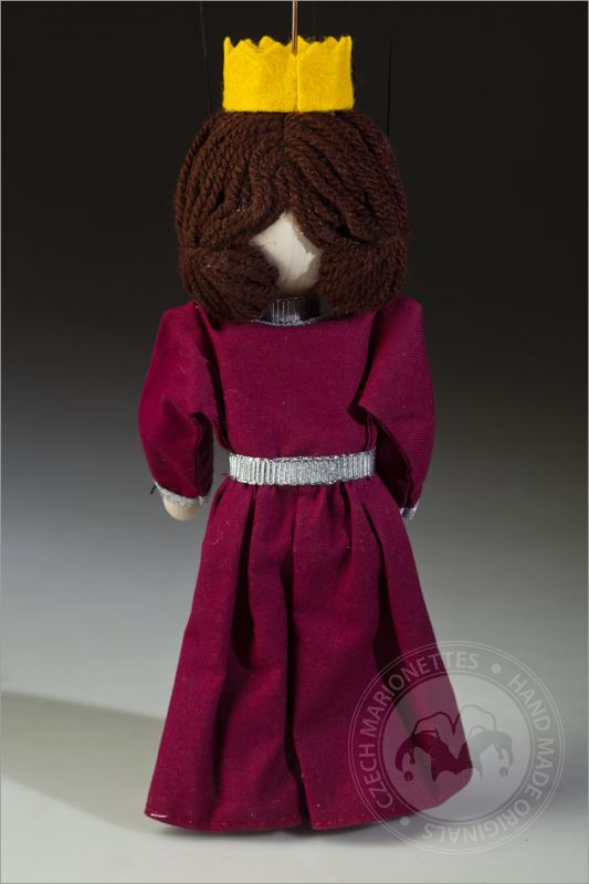 La reine Hedwige mesure 20 cm de haut et l'ensemble est en bois. Sa robe bordeaux est cousue à la main et élaborée dans les moindres détails. Ses cheveux sont en laine et son visage est peint à la main avec des couleurs non dangereuses. Cette marionnette de la reine Hedwige est un excellent jouet en bois pour la vie, qui réveillera beaucoup d'émotions en vous. La marionnette a un appareil simple professionnel.