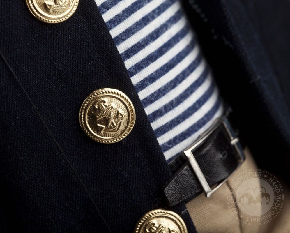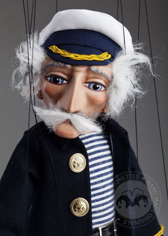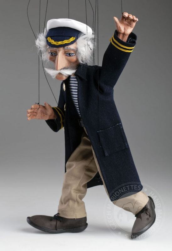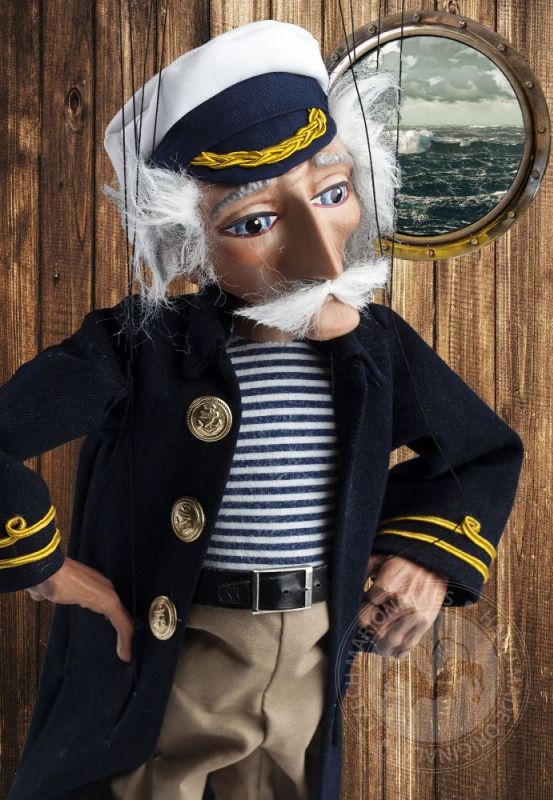 Ce mec a fait le tour du monde ... Eh bien, disons l’océan. La marionnette tchèque du Marin du Sea Wolf a vu des endroits dont nous n'avions jamais rêvé! Il est expérimenté, courageux et très sage. Il n’est pas toujours facile d’être capitaine et nous devons admettre que notre marin s’est montré plus que efficace. Remarquez une tenue soigneusement cousue composée d'un t-shirt à rayures bleu-blanc, d'un manteau pointu avec des boutons dorés et d'un pantalon beige. Son expression reflète toutes les croisières, les orages et les ports qu’il a laissés. Sa moustache blanche et bien entretenue est comme une garniture sur le gâteau. N'hésitez pas et regardez de plus près cette création incroyable!