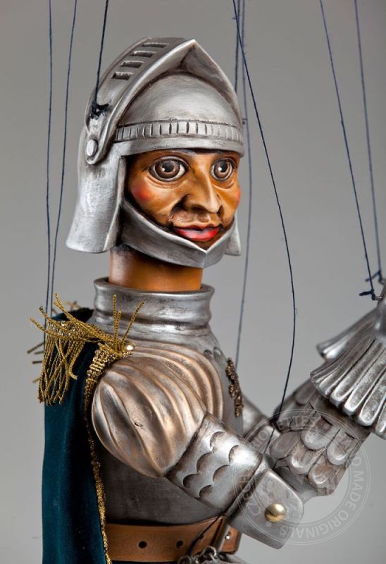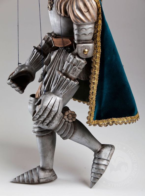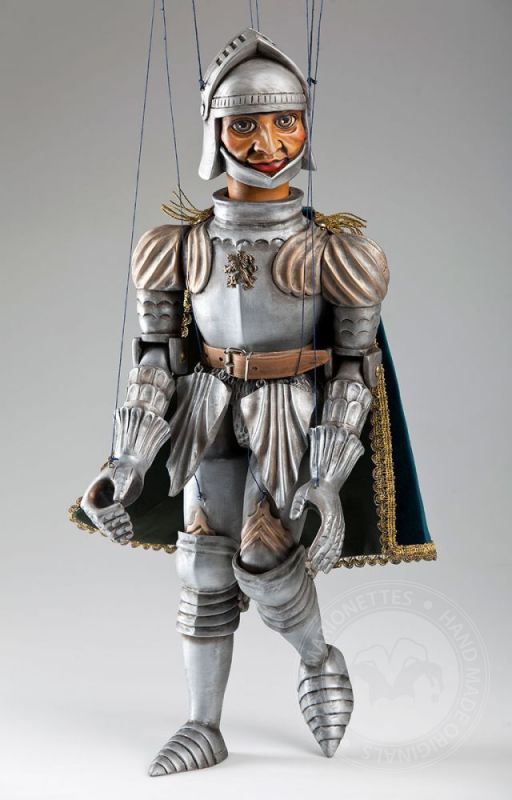 Ce chevalier est une marionnette tchèque unique. Son armure, peinte en gris argenté avec une peinture non toxique, est ornée de détails impressionnants. Chaque centimètre est soigneusement sculpté à la main dans le bois. Elle est idéale comme pièce de décoration ou pour enrichir une collection personnelle.