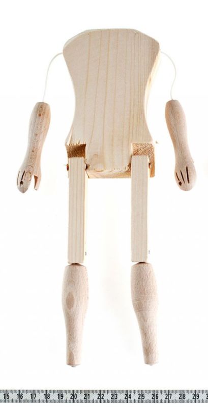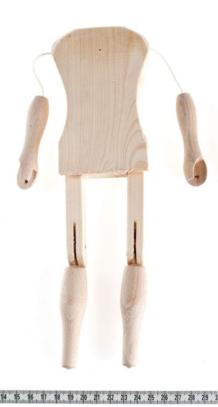 Achetez les pièces chez nous, assemblez la marionnette, peignez-la et habillez-la comme bon vous semble. Vous pouvez également créer certaines parties selon votre imagination et vos compétences. L'initiative n'a pas de limites : vous pouvez utiliser de la pâte, du tissu, du bois, ou même une balle de tennis – tout est possible !