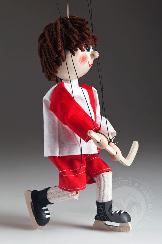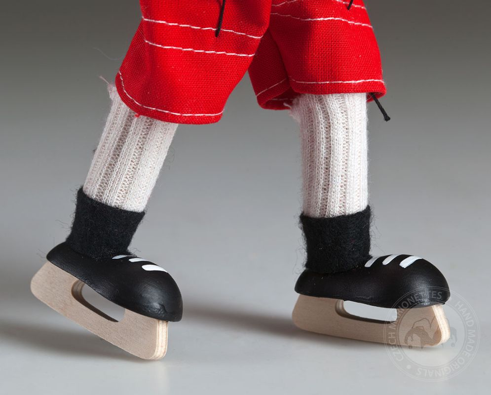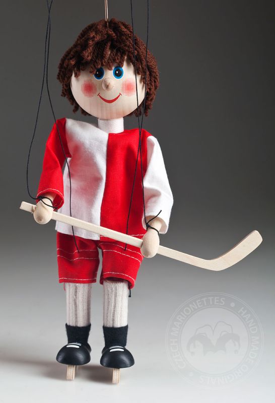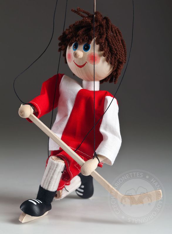 Jaromír passe à l'attaque. Un beau dribble autour de la défense. Il tire et c'est un BUT ! Avec la marionnette de Jaromír, vous aurez l'impression d'être à un véritable match de hockey. Le rouge est la couleur de la victoire féroce, et Jaromír incarne cela. Sur la glace, il est chez lui, et chez vous, il se sentira tout aussi bien.