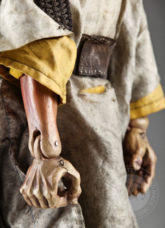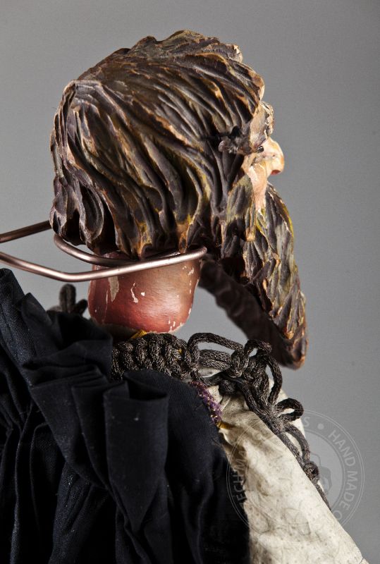 Avec sa barbe épaisse, ses chaussures en tissu et son bracelet en cuir, cette marionnette Hercules a un look brut vraiment unique. Ses yeux sombres rayonnent de gentillesse et son regard gagnera votre cœur. Tous les matériaux utilisés pour fabriquer cette marionnette sont originaux et de très haute qualité.