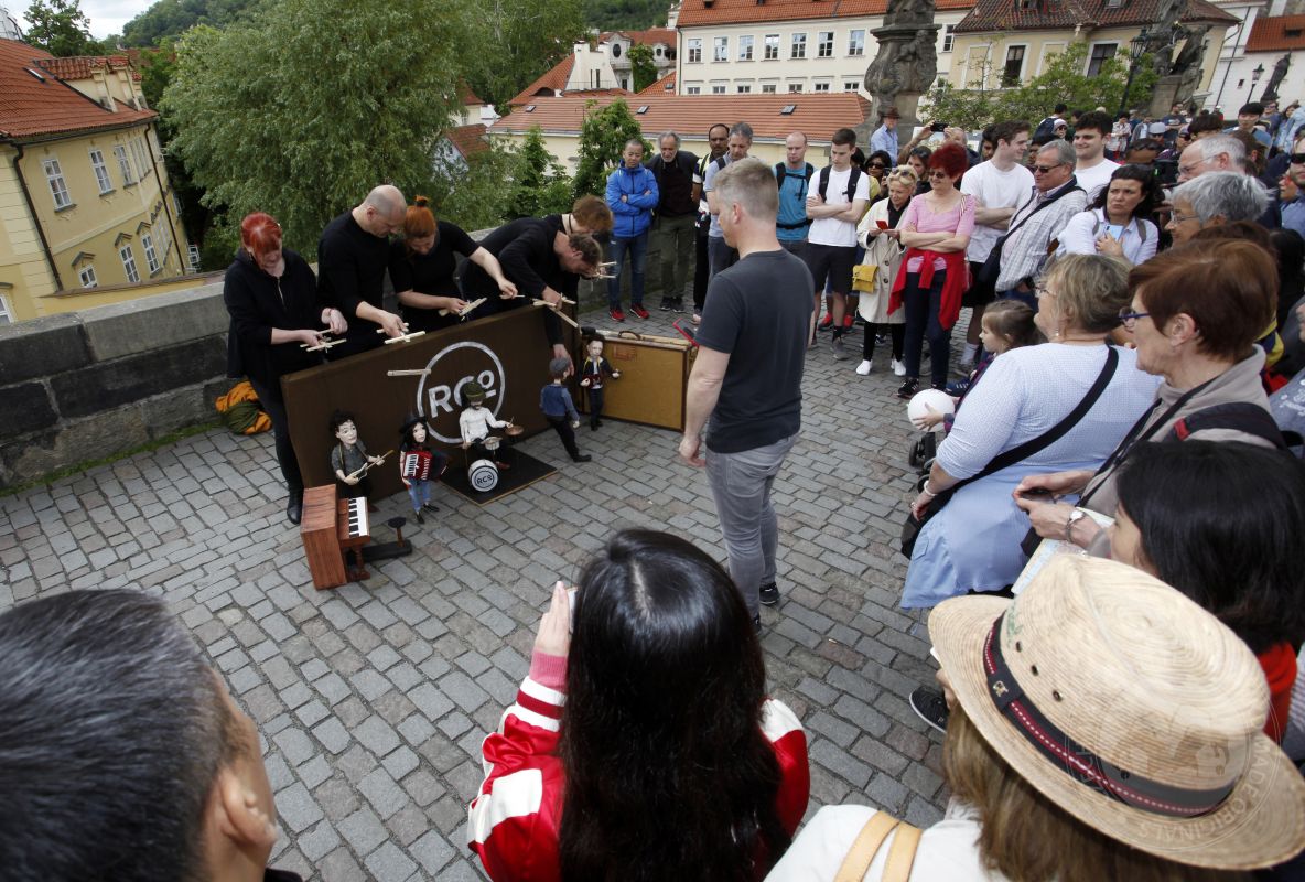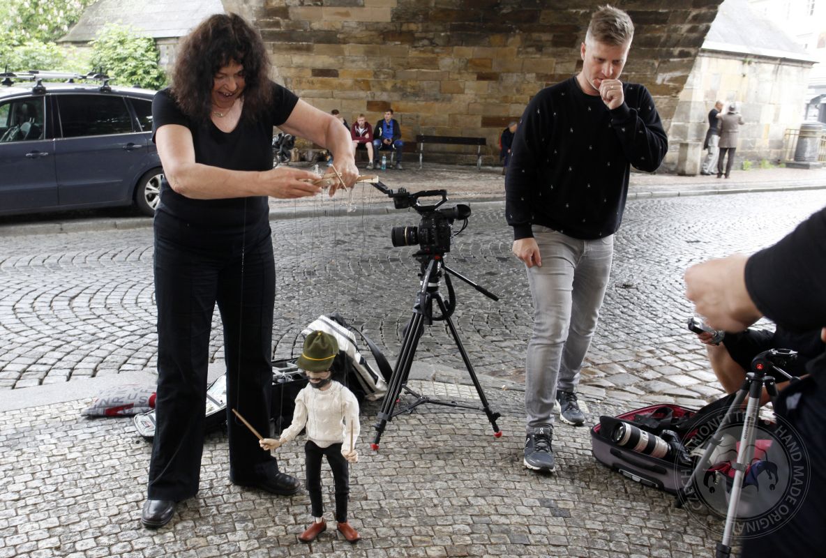Des marionnettes fabriquées pour Rend Co. et opérées dans les rues de Prague