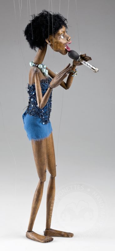 La chanteuse de soul marionnette a quitté son ancienne vie, directement des lumières brillantes fumées et glamour de la ville qu'elle scintille et chante dans la vôtre. En la regardant, vous pouvez entendre des artistes aussi merveilleux que Ella Fitzgerald, Billy Holliday, Diana Ross et Whitney Houston. Elle peut certainement tenir un air avec sa voix étonnante et captivante.