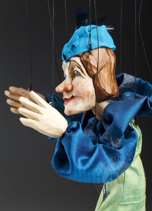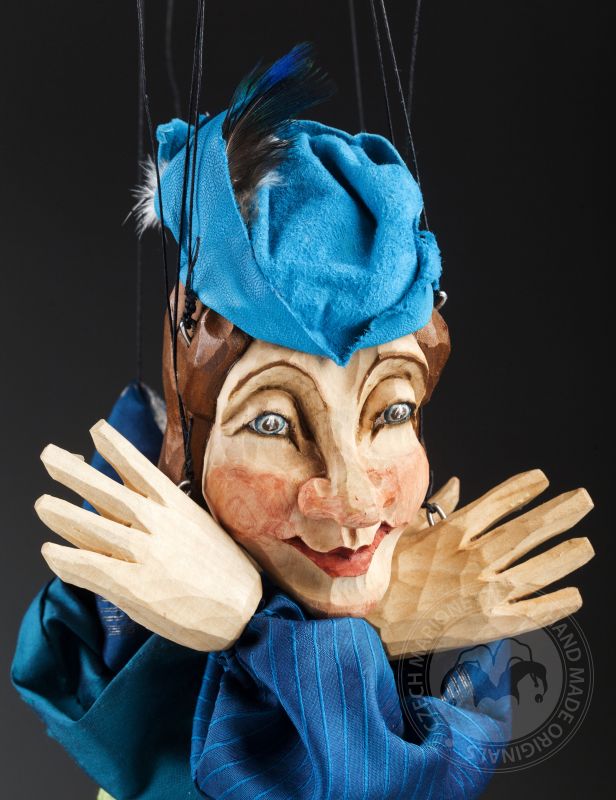Un sourire doux et des yeux rêveurs aux couleurs douces dominent un joli visage. Le jeune homme idéaliste attend avec impatience tout ce que la vie peut apporter. La sculpture sur bois typique de Lenka peut être vue de loin depuis une marionnette. Lenka est issue d'une famille de marionnettes. Elle a appris de sa mère, qu'elle a aidé à l'origine. Elle vit à Londres et ses marionnettes sont recherchées par les collectionneurs. Des couleurs choisies avec précision et un style vestimentaire distinctif soulignent l'impression générale de l'œuvre d'art.