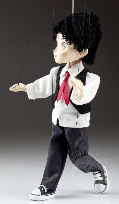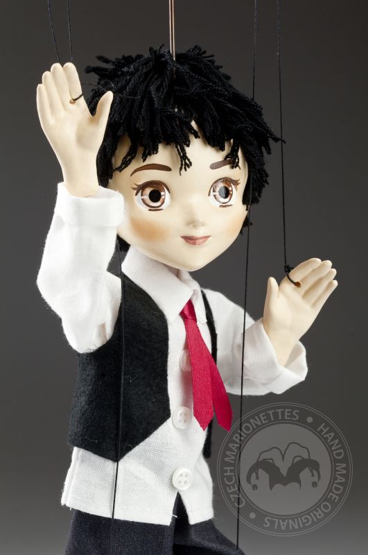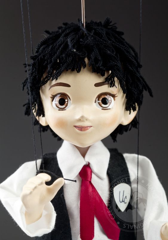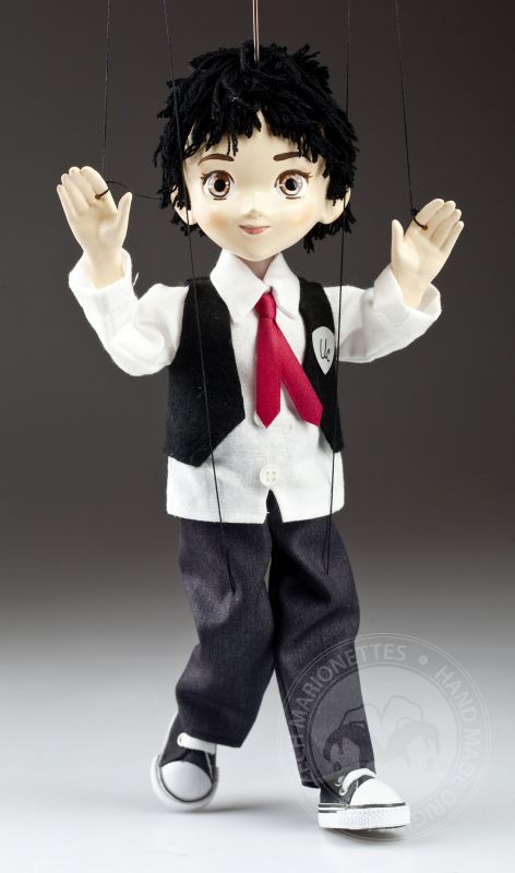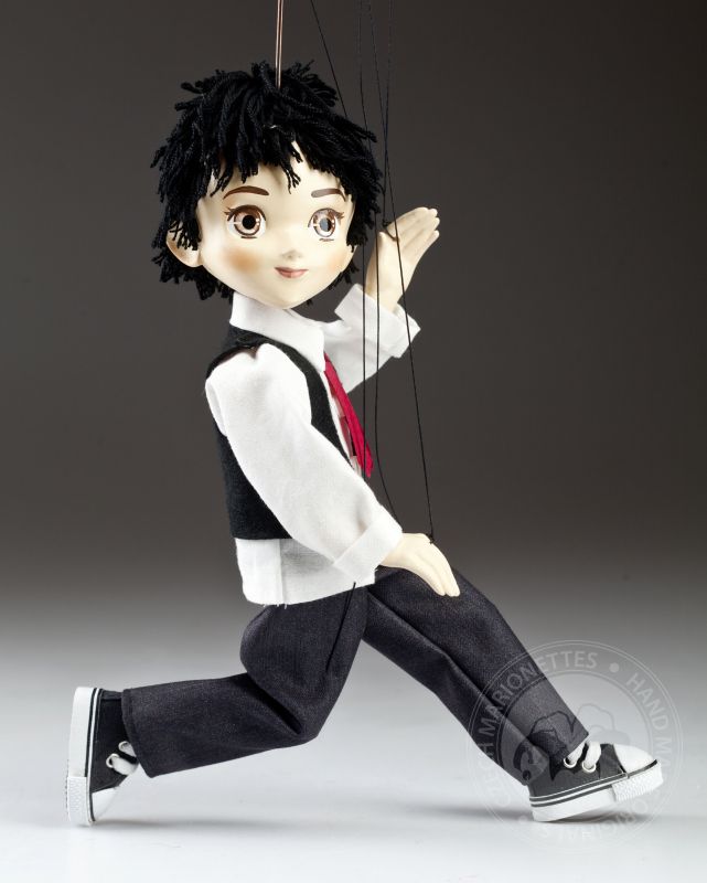 La marionnette du garçon est fabriquée en petites séries. Certaines parties de son corps sont en résine spéciale, d'autres en bois. Il est peint à la main par des peintres expérimentés et le vêtement est cousu par des couturières intelligentes. La marionnette est modérément mobile, facile à utiliser, connectée à un contrôleur de marionnettes classique.